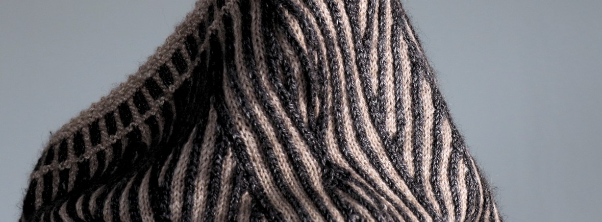 Featuring stranded colourwork in stripes of two colours, corrugated ribbing and Channel Island cast-on and bind-off edges, the cowl is inspired by the striped architecture of Italian churches such as the Duomo of Orvieto pictured here. The coordinating mitts use the same edging but use twisted stitches to create diagonal stripes.