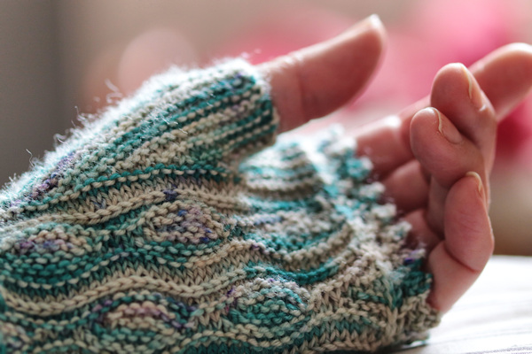 In 2020 I was delighted to work with Ishrat of Fruitful Fusion, having seen her lovely hand-dyed yarns at Yarningham the previous year, in designing these delicate mitts.