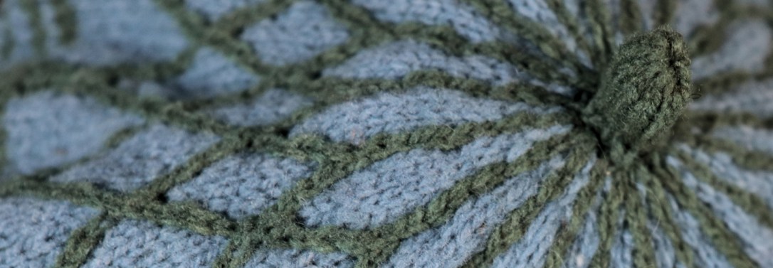 A stranded colourwork hat, with two-colour cables, inspired by the West Sussex coast.