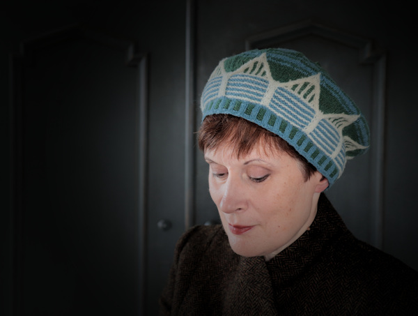 Featuring stranded colourwork knitted in the round, with slipped stitch patterns and two-colour cables, this hat is inspired by beach huts on the West Sussex coast at Rustington, the home of South Downs Yarn.