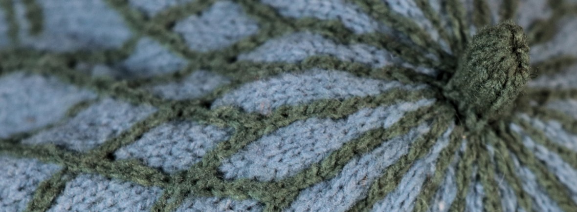 Featuring stranded colourwork knitted in the round, with slipped stitch patterns and two-colour cables, this hat is inspired by beach huts on the West Sussex coast at Rustington, the home of South Downs Yarn.